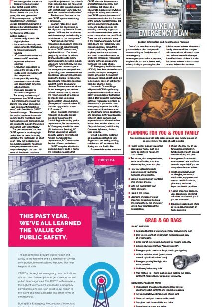 CREST provides emergency radio communications exclusively to 50 emergency response and public service agencies in B.C.’s Capital Region. In the case of a natural disaster, the CREST system is designed to allow for redundancy ensuring that fire departments, police departments and ambulance services can speak to each other and back each other up.